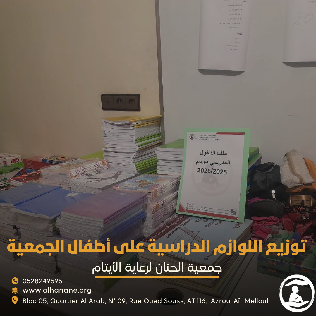 هذا النشاط يدخل في صميم الرسالة النبيلة التي ما فتئت جمعية الحنان تلتزم بها منذ سنوات، عبر دعم التعليم ومساندة الأسر المعوزة في توفير ظروف تعليمية أفضل لأبنائها. وهنا لا يفوتنا أن نرفع أسمى عبارات الشكر والتقدير إلى لجنة التربية والتكوين التي لعبت دورًا محوريًا في الإعداد والتنظيم وإنجاح هذا العمل التضامني.